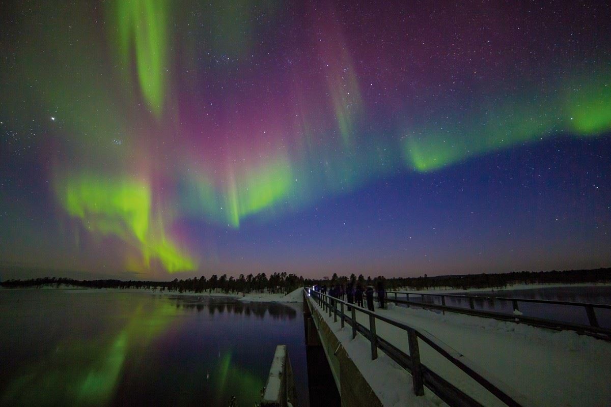 Flug nach Ivalo. Transfer zum Hotel (ca. 30 Min.), welches von langgestreckten Bergrücken und uralten Wäldern umgeben ist und in einer weiten Tundra liegt.