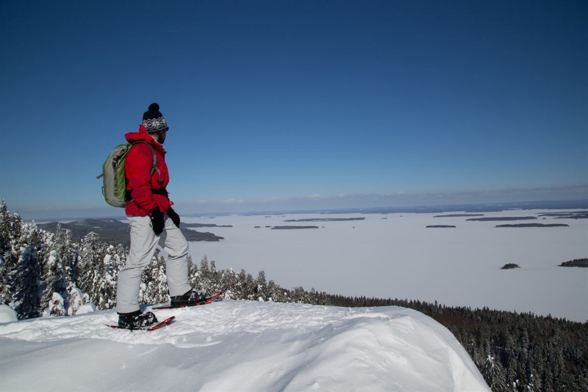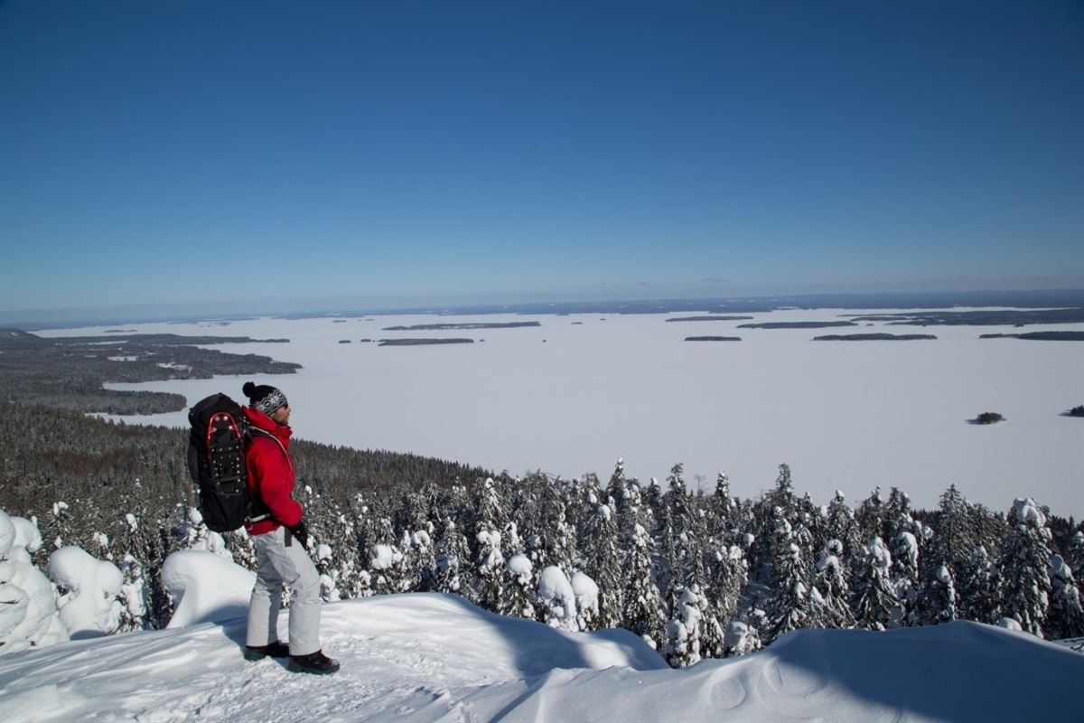 Heute lernen Sie das ursprünglichste Fortbewegungsmittel der Sami kennen. Mit Schneeschuhen ausgestattet nimmt Sie Ihr Guide mit auf eine leichte Schneeschuhwanderung entlang des Inarisees und durch den bezaubernden Winterwald. Genießen Sie die atemberaubende Natur. Vielleicht entdecken Sie die ein oder andere Tierspur im Schnee oder sogar die zugehörigen Waldbewohner.
