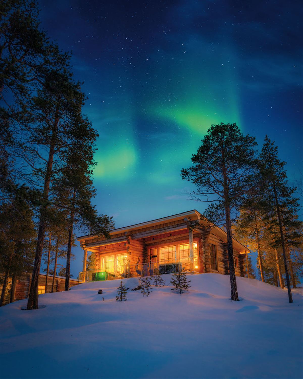 Heute Abend fahren Sie mit Schneemobilen in die winterliche Natur hinaus, um erneut das schönste Schauspiel des nordischen Winters zu bestaunen – das magische Polarlicht. In den Wäldern ist es still und der blau-schwarze Nachthimmel schafft eine magische Atmosphäre. Mit etwas Glück können Sie das spektakuläre Naturphänomen mit all seinen prächtigen Farben hautnah beobachten – ein Erlebnis, das Sie so schnell nicht vergessen werden.