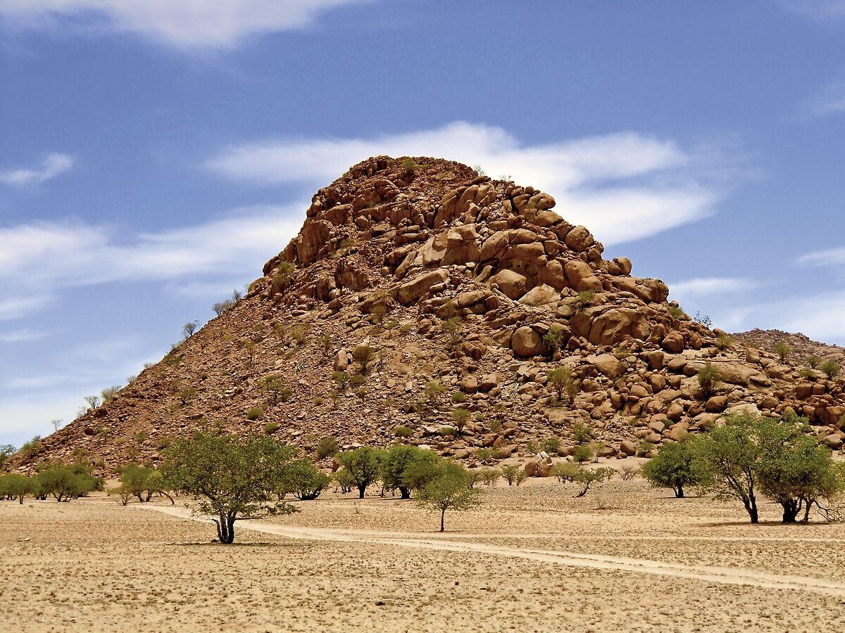 Heute fahren Sie ins Damaraland. Besuchen Sie Twyfelfontein, einen der reichsten Fundorte an Felsgravuren, den „Verbrannten Berg“ und die Orgelpfeifen. Oder aber Sie nehmen an einer von Ihrer Lodge angebotenen Wanderung teil (fakultativ). Eine Nacht in der Ondjamba Hills (Mittelklasse). Ca. 340 km (Frühstück, Abendessen)