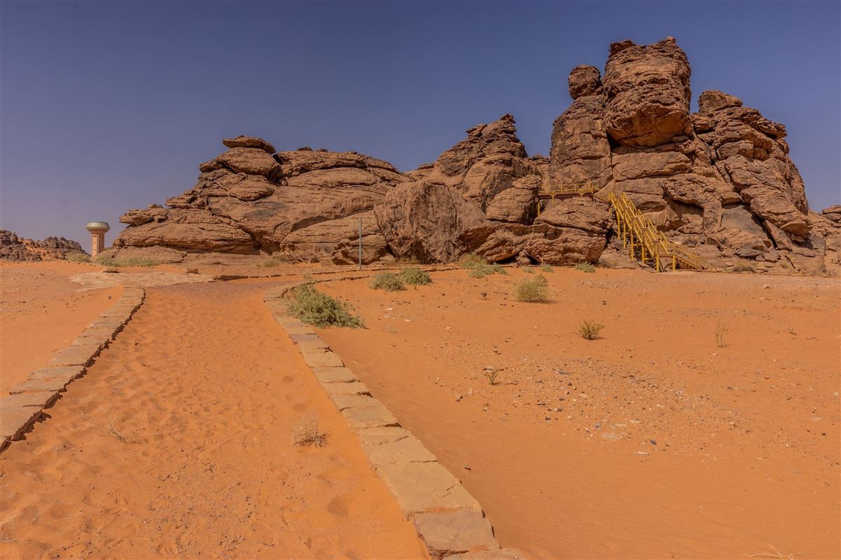 Tabuk ist eine Militärstadt im Nordwesten Saudi-Arabiens mit einem alten Fort und einer kleinen Station der Hedschas-Bahn. Die Hedschas-Bahn ist eine historische Eisenbahnlinie, die Anfang des 20. Jahrhunderts erbaut wurde. Die Bahnlinie erstreckte sich von Damaskus in Syrien bis nach Medina in Saudi-Arabien und hatte das Ziel, muslimischen Pilgern den Transport nach Mekka zu erleichtern und die militärische Kontrolle der Region zu stärken. Der Bahnhof von Tabuk ist heute ein historisches Denkmal und bietet Einblicke in die Bedeutung und den Betrieb der Eisenbahn in der Region. Auf der Weiterfahrt geht es durch das Wadi Disah, ein malerisches, ca. 25 km langes Tal aus sandigen Flussbetten mit schattenspendenden Palmen, umgeben von hoch aufragenden Steilhängen aus rotem Sandstein, atemberaubenden Canyon-Gipfeln, sprudelnden Süßwasserbächen und einer Oase. Die dramatischen Klippen beherbergen alte Höhlen, versteckte Gräber und beeindruckende Jahrhunderte alte Schriften und Kunstwerke von Menschen und Tierfiguren. Genießen Sie ein Picknick in dieser wunderschönen Landschaft, bevor es nach AlUla geht. 3 Nächte im Sahary AlUla Resort (Mittelklasse, Landeskategorie: 3 Sterne). (Frühstück, Picknick, Abendessen)