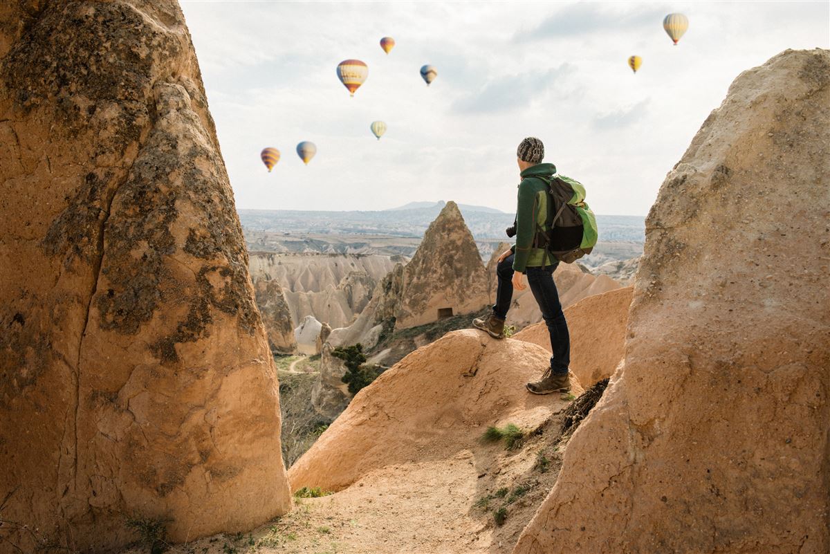 Frühmorgens Möglichkeit zur Ballonfahrt über die Tuffstein-Landschaften (vor Ort buchbar). Wanderung über den Boztepe Tafelberg zum Zelve-Tal, weiter zu den Erdpyramiden von Pasabag und zum Dorf Çavusin.
