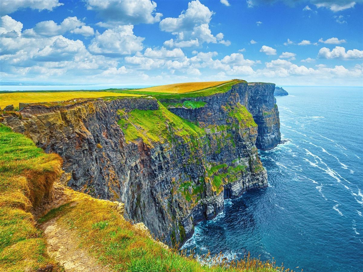 Fahren Sie zunächst zur atemberaubenden Steilküste Cliffs of Moher, die bis zu 200 m hoch aus dem Meer ragt und sich über eine Länge von 8 km vom Hag´s Head bis zum O`Brien´s Tower erstreckt. Genießen Sie von dort den grandiosen Ausblick auf den tosenden Atlantik oder besuchen Sie das Besucherzentrum (fakultativ). Anschließend fahren Sie weiter in Richtung Osten und besichtigen die legendäre Klosterruine Clonmacnoise (fakultativ), die malerisch am Ufer des Flusses Shannon liegt. Sie ist eine der bedeutendsten frühmittelalterlichen Klosteranlagen Irlands. Danach Rückfahrt nach Dublin. Alternativ können Sie nach Ihrem Besuch der Cliffs of Moher über Tullamore nach Dublin zurückfahren. In Tullamore können Sie die bekannte Tullamore Dew Whiskey Distillery (fakultativ) besichtigen und alles über die Geschichte und den Herstellungsprozess des berühmten Whiskeys erfahren und den Whiskey am Ende selbst verkosten.