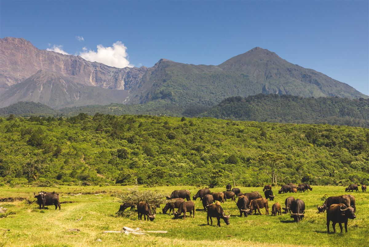 Fahrt in die Ngorongoro Conservation Area (UNESCO-Welterbe, Fläche ca. 8.300 km²). Pirschfahrt im Ngorongoro-Krater, dem größten intakten Kraterkessel der Welt (Durchmesser ca. 20 km). Heimat für mehr als 25.000 Tiere, darunter Löwen, Büffel, Zebras, Antilopen, Elefanten und Spitzmaulnashörner. Giraffen fehlen aufgrund der steilen Kraterwände.