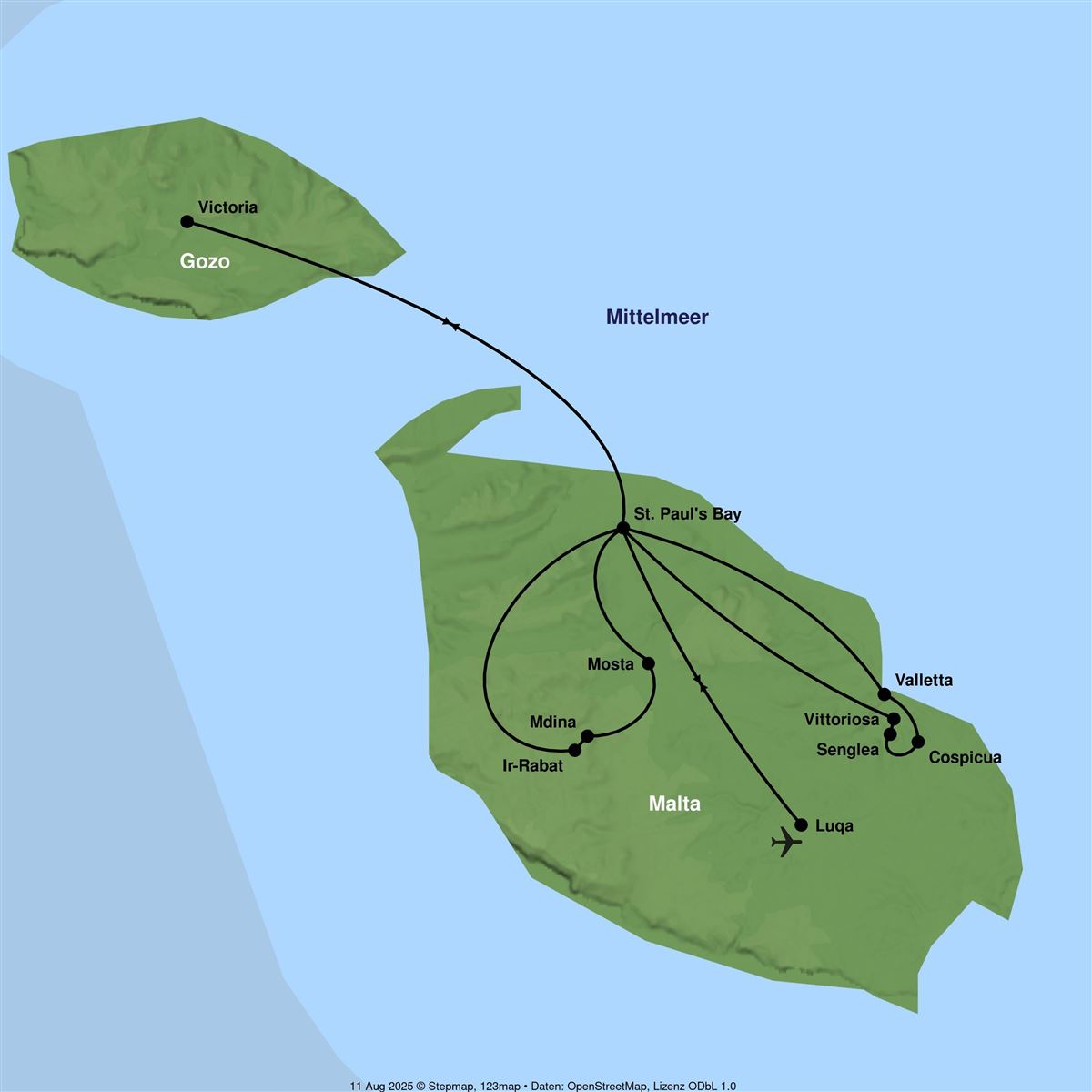 Flug nach Malta und Transfer zum Hotel in St. Paul’s Bay.