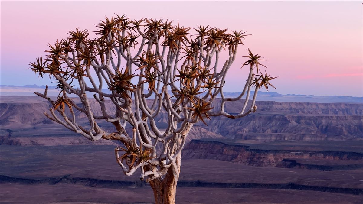 Heute fahren Sie weiter in Richtung Süden und besichtigen den Garas Köcherbaumwald in der Nähe von Keetmanshoop. Die ausgehölten Äste dieser Aloe wurden früher von den Buschmännern als Köcher benutzt, daher stammt auch der Name der Pflanze. Vorbei an Bergen, Geröllfeldern und karg bewachsenen Steppen gelangen Sie in die Nähe des Fish River Canyons zu Ihrer Unterkunft. Am späten Nachmittag können Sie optional eine geführte Wanderung unternehmen oder an einer Naturrundfahrt teilnehmen und anschließend einen herrlichen Cocktail bei Sonnenuntergang genießen (fakultativ). Eine Nacht in der Canyon Lodge (Mittelklasse). Ca. 450 km (Frühstück, Abendessen)