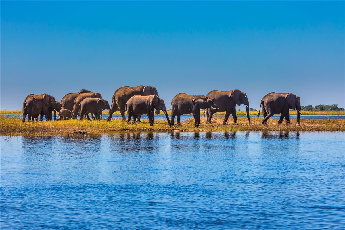 Sie werden über die Grenze zum Flughafen Kasane gebracht, wo die Übernahme des separat gebuchten Mietwagens erfolgt. Fahrt zum Hotel. Am späten Nachmittag erwartet Sie eine Bootsfahrt auf dem Chobe Fluss. Von Bord aus, können Sie viele Tiere im Wasser und am Ufer erspähen. Entdecken Sie Flusspferde, Krokodile und viele Elefanten, die hier beheimatet sind. Nach dem Sonnenuntergang legt das Boot direkt am Ufer Ihrer Lodge wieder an. Eine Nacht in Kasane/Chobe Nationalpark. Ca. 90 km