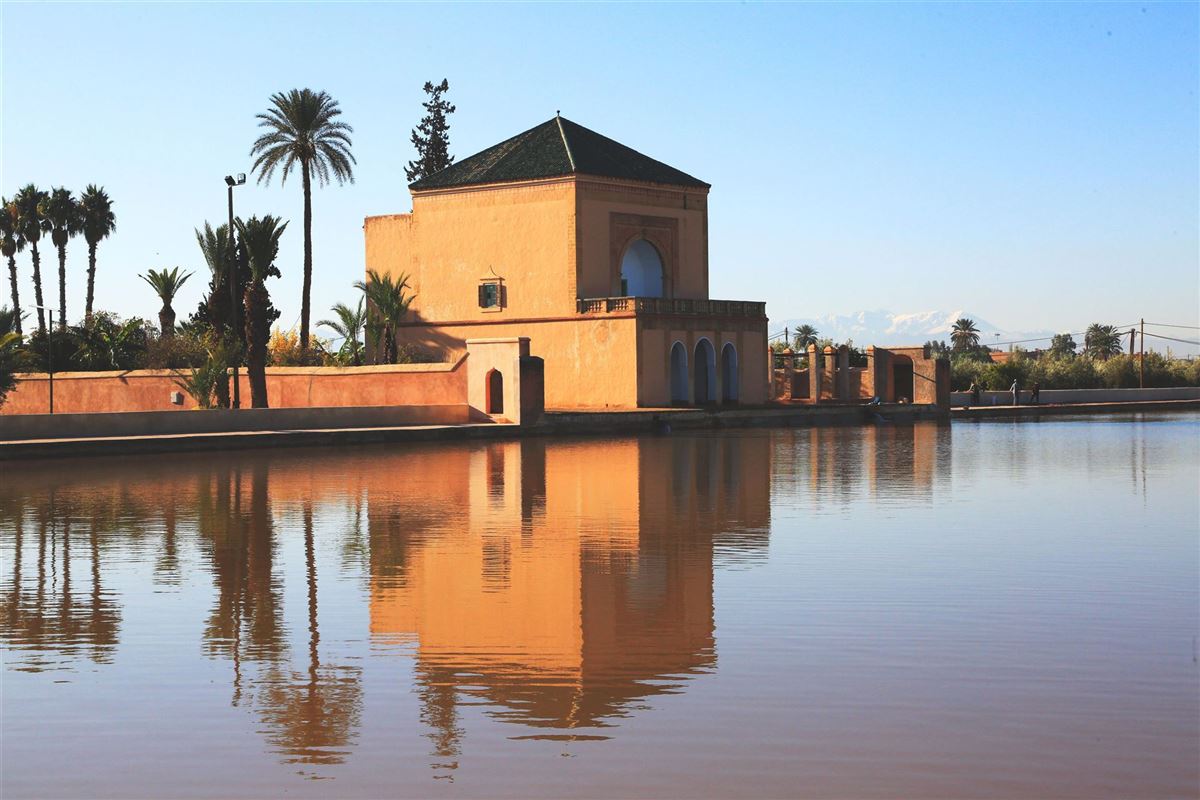Nach dem Frühstück beginnt die Besichtigung von Marrakesch, gegründet Ende des 11. Jahrhunderts durch die Almoraviden und gelegen in einer fruchtbaren Oase am Fuße des Atlasgebirges. Zunächst steht der Menara-Garten auf dem Programm, eine harmonische Anlage aus Olivenhainen und Obstplantagen mit einem ikonischen Pavillon aus dem 16. Jahrhundert, der 1869 restauriert wurde. Anschließend folgt die Koutoubia-Moschee, deren Minarett das bekannteste Wahrzeichen der Stadt darstellt. Im Rahmen des Ausflugspakets auf Wunsch ist der Besuch des Bahia-Palastes möglich, eines rund 8.000 Quadratmeter großen Ensembles aus kunstvollen Intarsien, Stuckarbeiten und bemaltem Holz. Ebenfalls auf Wunsch ist der Besuch des Geheimen Gartens, einer ruhigen, historischen Oase innerhalb der Medina. Danach führt der Weg zum Platz Jamaa El Fna, dem lebendigen Zentrum der Altstadt mit Schlangenbeschwörern, Gauklern, Marktständen und Straßentheater. Am Abend besteht im Rahmen des Ausflugspakets auf Wunsch die Möglichkeit zu einem traditionellen Abendessen. Übernachtung in Marrakesch.