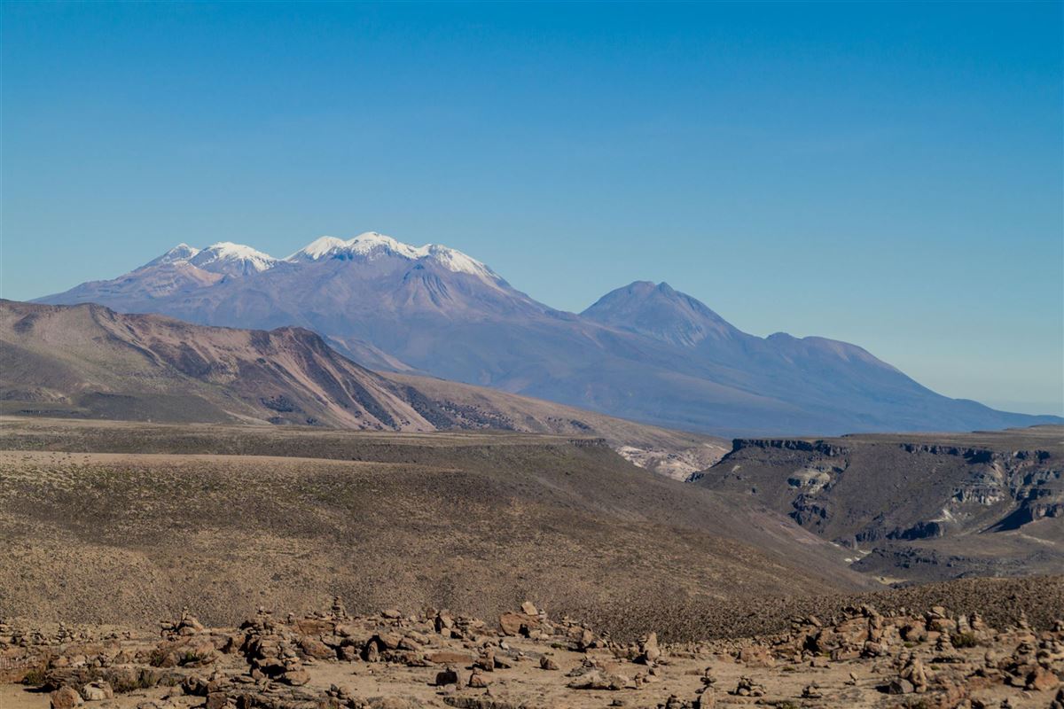 Nach dem Frühstück führt die Fahrt in Richtung Colca Canyon. Im Nationalpark Aguada Blanca lassen sich mit etwas Glück Herden wilder Vicuñas, Lamas und Alpakas beobachten. Auf 4.910 m Höhe wird der höchste Aussichtspunkt der Route erreicht, mit Blick auf die schneebedeckten Vulkane Misti, Ampato und Sabancaya. Nach dem Mittagessen in Chivay bleibt Zeit zur Entspannung in den Thermalbädern La Calera oder für einen Besuch des lokalen Marktes.