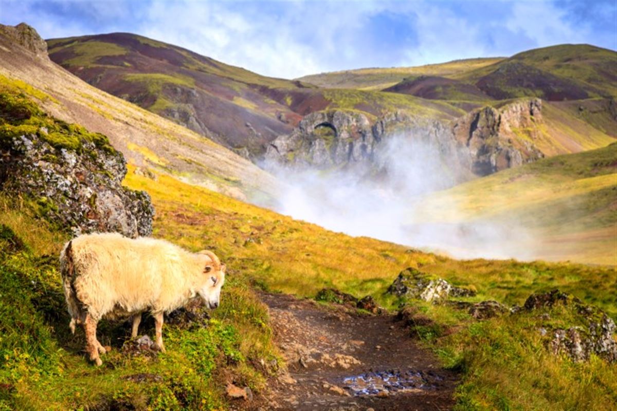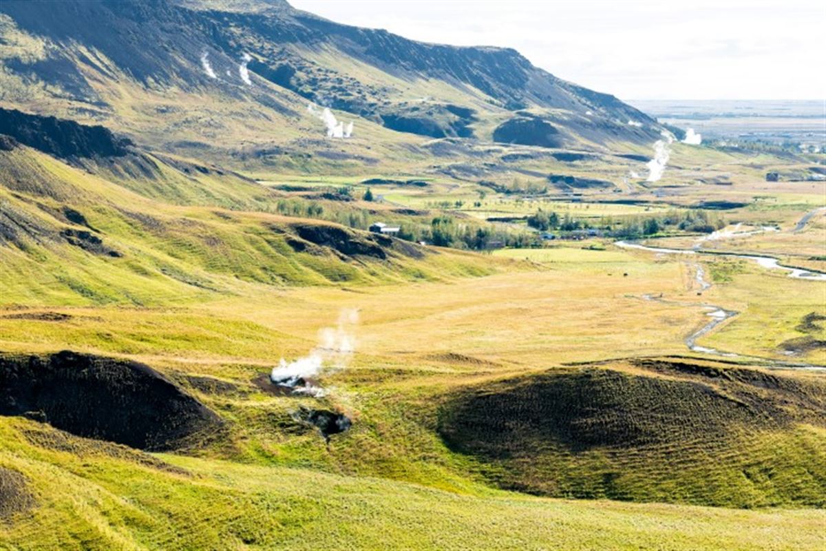 Individuelle Anreise nach Keflavík, Island, Transfer mit dem Flybus nach Reykjavík (ca. 55 km). Vom Busterminal geht es weiter zur Farm Vellir in Hveragerði. Check in im Hotel Eldhestar oder einem Hotel in der Nähe. Kennenlernen der Mitreisenden beim gemeinsamen Abendessen.
