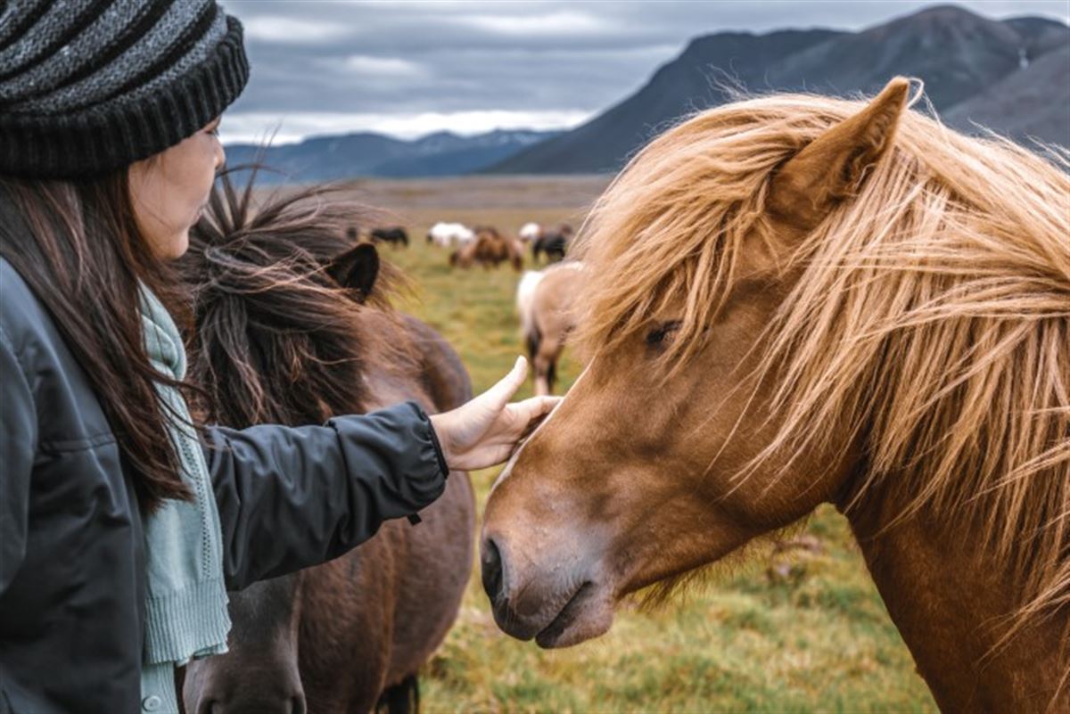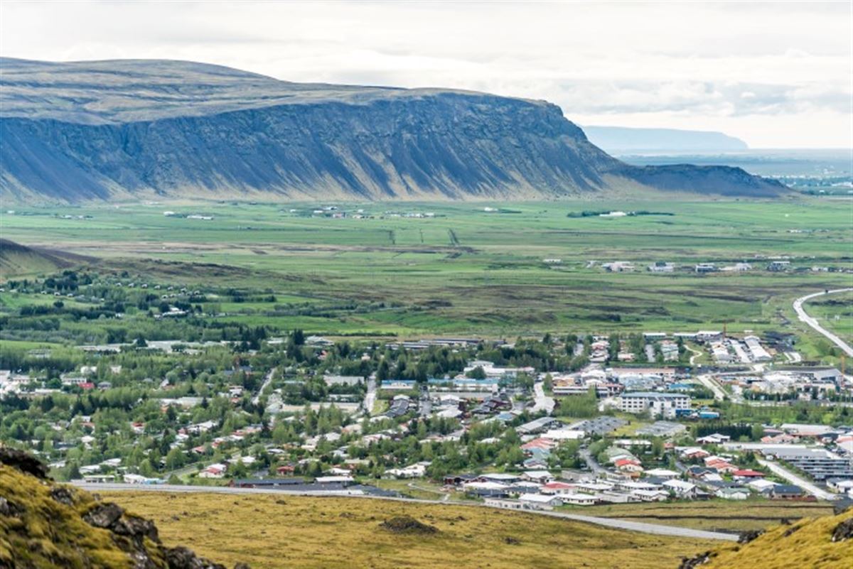 Nach dem Frühstück beginnen wir mit einer Tour in die Vergangenheit, die über Wiesen und durch Lavafelder führt. Wir sehen verschiedene Bauernhöfe, die uns einen Eindruck geben, wie sich die isländische Landwirtschaft und insbesondere die Pferdehöfe in den letzten Jahrzehnten entwickelt haben. Wir reiten auf schönen Reitwegen zwischen Pferdeweiden und Feldern, die zu langem Tölten einladen. Am Nachmittag folgen wir einem alten Pfad am Fusse des Berges Ingólfsfjall, der nach dem ersten Siedler Islands, einem norwegischen Wikinger, benannt ist. Grüne Ebenen, bizarre Felsformationen und steile Berghänge lassen uns beeindruckende Kontraste der Natur erleben. Wir sehen einen rekonstruierten Wikingerhof, bevor wir zurück nach Vellir reiten.