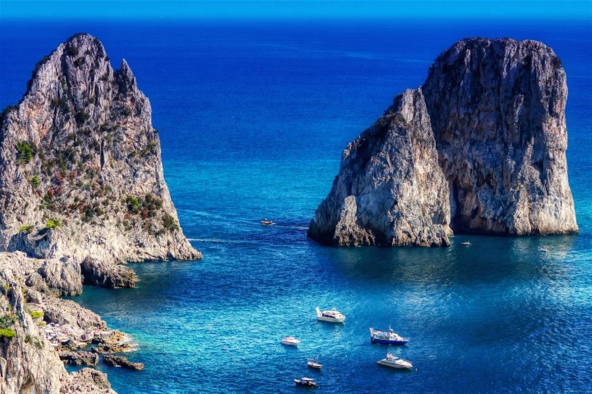 Am Morgen segeln Sie über 19 Seemeilen von der Insel Ischia nach Capri. Lernen Sie die Faraglioni-Felsen der Insel kennen, besuchen Sie die Blaue Grotte und beobachten Sie die erstaunliche Farbe des Wassers, wenn das Sonnenlicht auf die Höhlen trifft. Rundfahrt über die Insel, vorbei am berühmten Leuchtturm und Halt in Marina Piccola, um das Ambiente zu genießen. Wenn Sie an der berühmten Betonmole anlegen, sollten Sie das Dorf Capri mit seinen engen Gassen voller Geschäfte, La piazzetta, die Via Tragara, die Via Camerelle etc. besuchen. Jeden Tag landen hier berühmte Persönlichkeiten aus der ganzen Welt mit ihren Mega-Jachten an. Fahrzeit ca. 3 Std.