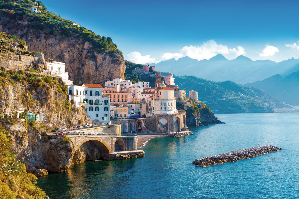 Heute erwartet Sie ein Ausflug an die Amalfiküste, eine der spektakulärsten Küstenlinien Europas. Mit einem Mini-Van genießen Sie Ihre Fahrt auf einer der schönsten Panoramastraßen der Welt. Ihr deutsch- oder englischsprachiger Fahrer wird Ihnen während der Fahrt allgemeine Informationen geben, wie Sie Ihre Freizeit an den Haltepunkten Positano, Amalfi und Ravello verbringen können. Positano ist ein wahres Paradies mit seinem Labyrinth aus engen Straßen, charmanten Gassen und farbenfrohen Boutiquen. Im Stadtzentrum thront die elegante Pfarrkirche Santa Maria Assunta mit ihrer markanten Kuppel und kunstvollen mehrfarbigen Marmoraltären. Das einzigartige Flair und die unvergleichliche Schönheit dieser Küstenstadt werden Sie sofort in ihren Bann ziehen. Die idyllische Stadt Amalfi besticht durch ein malerisches Geflecht aus engen Gassen und pittoresken Treppen, die immer wieder atemberaubende Ausblicke auf das strahlend blaue Meer und die bezaubernde Landschaft freigeben. Über allem thront die majestätische Kathedrale Sant´Andrea, Zeugnis der glorreichen Vergangenheit Amalfis als stolze Seerepublik.Ravello, eine weitere Perle der Amalfi-Küste, entzückt als elegantes Dorf, das in sattes Grün getaucht ist und von luxuriösen Villen geprägt wird. Besonders herausragend ist das berühmte Festival im Garten der Villa Rufolo, das in einer stimmungsvollen Kulisse stattfindet. Im Herzen Ravellos liegt die Piazza Vescovado, umrahmt von der beeindruckenden Architektur des Palazzo Rufolo und der prachtvollen Kathedrale mit ihrem imposanten Portal und Glockenturm. Rückfahrt zum Hotel bei Sorrent.