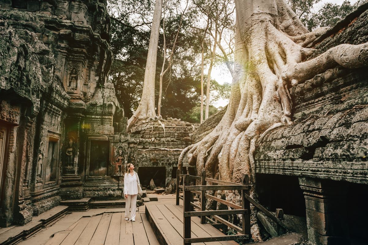 Sie besuchen das Battambang Museum und schlendern durch die kolonial geprägte Stadt. Danach sehen Sie die etwas außerhalb gelegene Tempelruine Wat Ek Phnom, die im 11. Jahrhundert von König Suryavarman I erbaut wurde. Bis 1970 galt sie als eine der schönsten Tempelanlagen aus der Angkor-Zeit. Lassen Sie sich außerdem eine kurze Fahrt mit dem "Bambus-Zug" nicht entgehen. Weiter geht die Fahrt in Richtung Siem Reap, wo Sie gegen Nachmittag ankommen. Wir empfehlen für den heutigen Abend (nicht inklusive) einen Stop in der "Footmassage-Street", wo sich ein Massage-Sessel an den nächsten reiht. Auch das vielfältige Nachtleben lässt keine Wünsche offen, während Sie an den unzähligen Souvenirständen vorbei schlendern können. 3 Nächte in Siem Reap im Empress Angkor Resort & Spa (gehobene Mittelklasse, Landeskategorie: 4 Sterne). Ca. 170 km (Frühstück)
