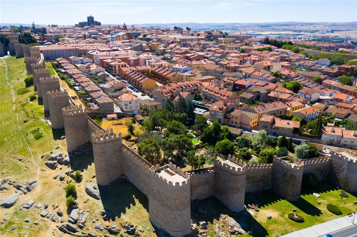 Fahrt nach Westen durch die kastilischen Ebenen. Zwischenstopp in Guijo de Ávila, bekannt für seine mittelalterlichen Stadtmauern und das Erbe der Heiligen Teresa, mit Freizeit für individuelle Besichtigungen. Weiterfahrt nach Salamanca, Universitätsstadt aus goldenem Stein, die im Rahmen einer geführten Besichtigung entdeckt wird.