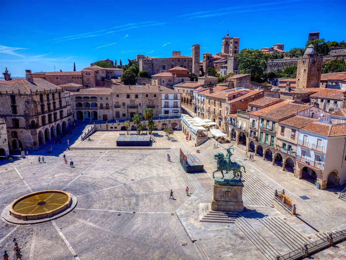 Abfahrt nach Mérida und geführte Besichtigung der Stadt mit ihrem bedeutenden römischen Erbe. Weiterfahrt durch die Extremadura mit Zwischenstopp in Cáceres, einer hervorragend erhaltenen mittelalterlichen Stadt, mit Freizeit zur Erkundung. Anschließend Weiterfahrt nach Toledo.