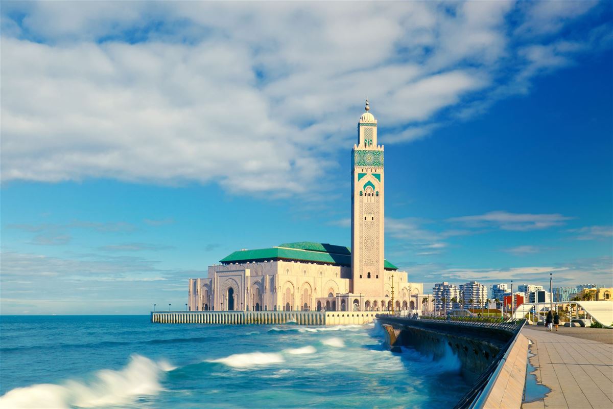 Nach einer morgendlichen Stadtrundfahrt mit Innenbesichtigung der großen Moschee Hassan II. fahren Sie in die Haupt- und Königsstadt Rabat. Sie besichtigen das Mausoleum der beiden Könige Mohammed V. sowie Hassan II., sehen den Königspalast (von außen) und besuchen den historischen Hassanturm. Danach fahren Sie weiter zur Hafenstadt Tanger an der Meerenge von Gibraltar. Spaziergang durch die Medina.