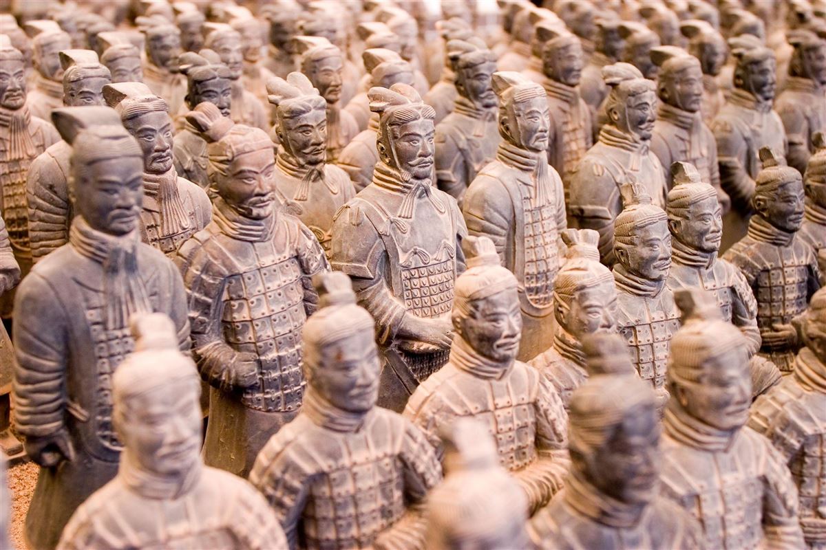 Besichtigung der berühmten Terrakotta-Armee des ersten Kaisers von China. Die überlebensgroßen, tönernen Soldaten befinden sich in mehreren Hallen. Im Anschluss folgt der Besuch einer Terrakotta-Figurenfabrik oder einer Jadeschnitzerei. Auf dem Rückweg zum Hotel wird die Große Wildganspagode besichtigt, eine der wichtigsten buddhistischen Pagoden Chinas.