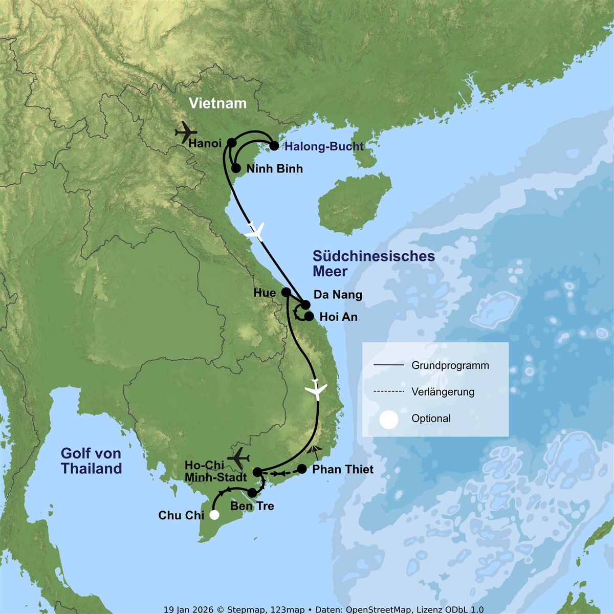 Die Zimmer stehen bis 12.00 Uhr zur Verfügung. Flughafentransfer nach Ho-Chi-Minh-Stadt und Rückflug nach Deutschland.