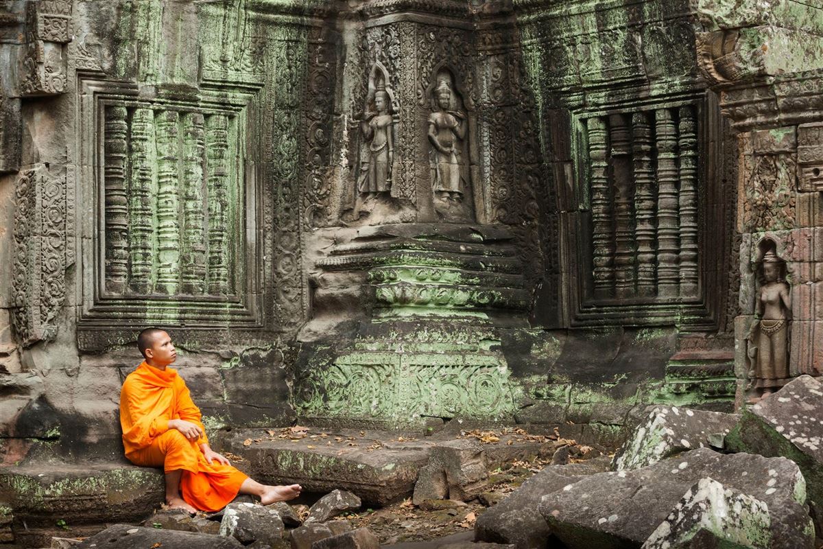 Heute steht ein Höhepunkt der Reise auf dem Programm: der Besuch der weltberühmten Tempelanlagen von Angkor. Besichtigung von Angkor Wat, das seit 1972 gemeinsam mit Angkor zum UNESCO-Weltkulturerbe zählt. Der Bau des Tempels erstreckte sich über mehr als 30 Jahre und gilt heute als herausragendes Beispiel der Kunst der Khmer und Hindus. In der äußeren Galerie befinden sich die längsten zusammenhängenden Flachreliefs der Welt, die mit detailreichen Darstellungen Einblicke in die hinduistische Mythologie geben. Bei einem Rundgang entfaltet sich die eindrucksvolle Atmosphäre der weitläufigen Anlage. Anschließend Besuch des naturbelassenen, vom Urwald überwucherten Ta-Prohm-Tempels, der bis heute nahezu im Zustand seiner Wiederentdeckung erhalten geblieben ist. Ein weiterer Höhepunkt ist der Tempel Banteay Srei, der mit seinen besonders feinen und aufwendigen Reliefarbeiten zu den Juwelen der Khmer-Kunst zählt. Bei gutem Wetter bietet sich zum Abschluss von der obersten Terrasse eines Tempels ein stimmungsvoller Blick auf den Sonnenuntergang.