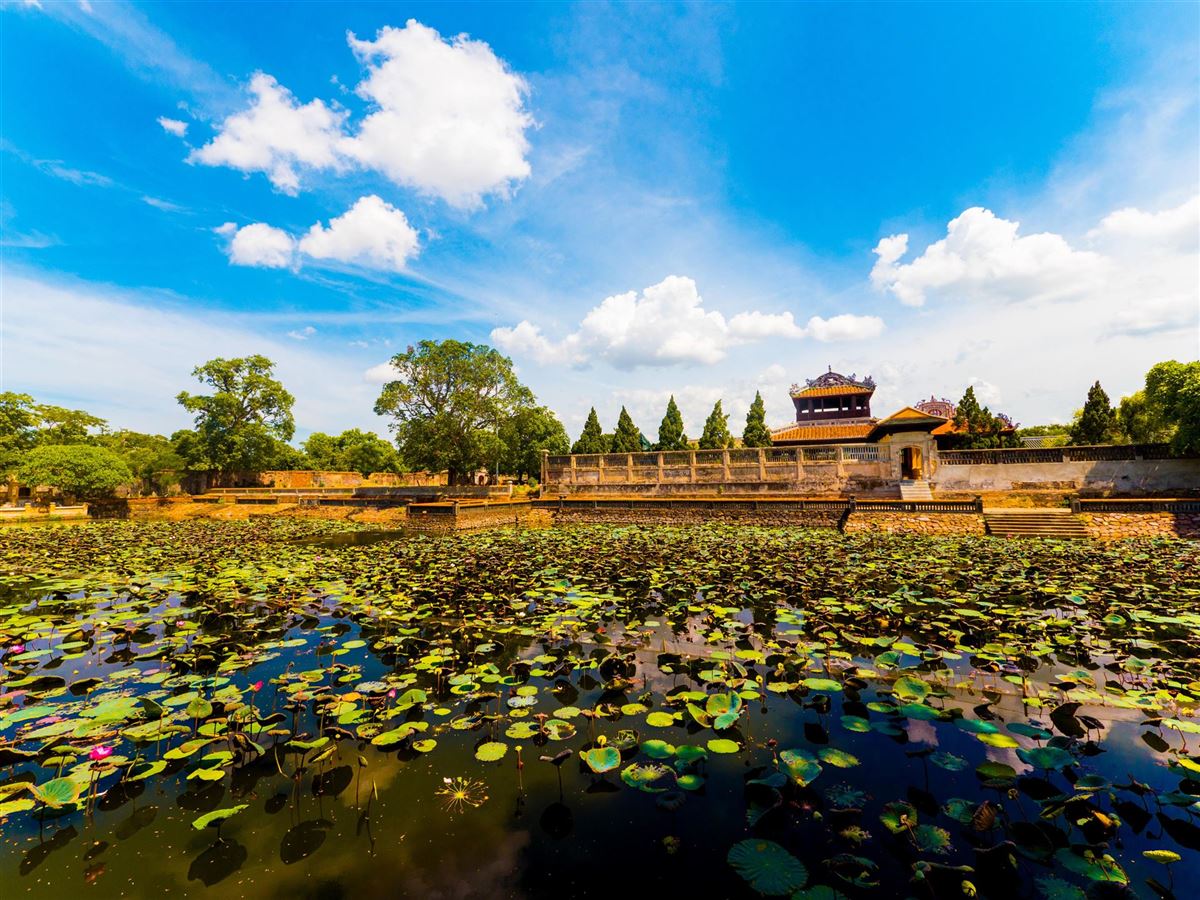 Heute steht die Erkundung von Hue, der ehemaligen Hauptstadt Vietnams, auf dem Programm. Besichtigung der alten Kaiserstadt, die 1993 zum UNESCO-Weltkulturerbe erklärt wurde. Die im frühen 19. Jahrhundert errichtete Stadt innerhalb der Festung, der Verbotenen Stadt in Peking nachempfunden, erstreckte sich ursprünglich über rund 10 km und war von einem tiefen Burggraben umgeben. Zu sehen sind unter anderem die Dien-Tho-Residenz, der Thai-Hoa-Palast, die Hallen der Mandarine sowie die Original-Neunte-Dynastie-Urne. Anschließend Bootsausflug auf dem Parfümfluss (Huong Giang) zur Thien-Mu-Pagode. Danach Weiterfahrt über malerische Gebirgsstraßen vorbei an Lang Co und Danang nach Hoi An. Der Hai-Van-Pass, natürliche Grenze zwischen Nord- und Südvietnam, eröffnet eindrucksvolle Ausblicke auf die vietnamesische Küstenlandschaft.