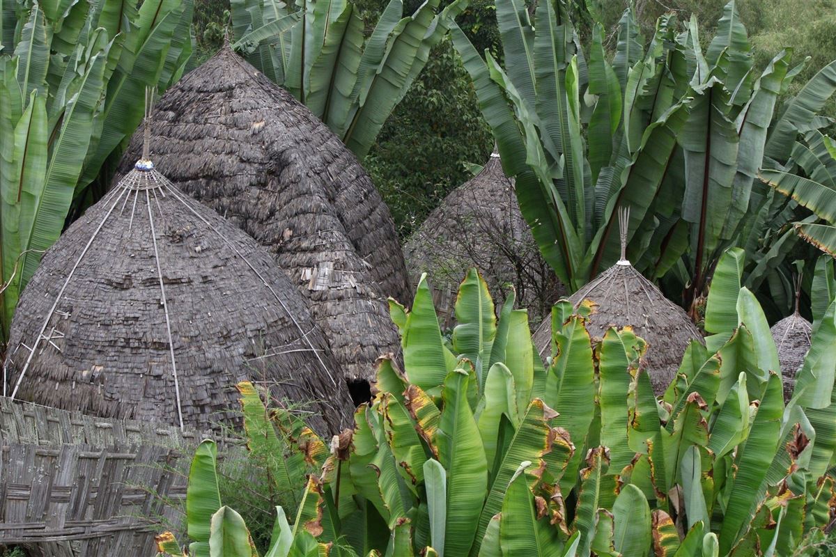 Heute erkunden Sie das Königreich Konso, dessen Rituale, Architektur und genialer Terrassenfeldbau zum UNESCO-Weltkulturerbe zählen. Am Vormittag entdecken Sie eines der Dörfer zu Fuß und können die massiven Ringmauern der Stadtviertel (Kanta) bestaunen. Am zentralen Versammlungsplatz und im Haus der Jungmänner wird die Geschichte und Kultur lebendig. Tauchen Sie ein in die Geschlechterordnung, den Begräbniskult der Waka und das Weben bunter Stoffe. Nicht minder faszinierend ist der nachhaltige Mischfeldbau. Seit Jahrhunderten terrassieren die Konso ihre Hänge und schufen dabei eine einzigartige Kulturlandschaft. Übernachtung wie am Vortag.