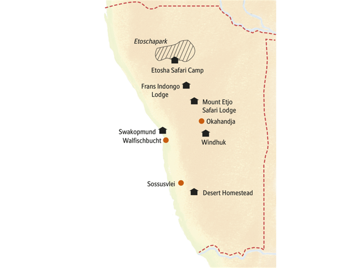 Wer die Namib bereisen möchte, sollte die Trockenzeit zwischen Mai und Oktober wählen – sie bietet ideales Wetter, klare Sicht und angenehme Temperaturen. Früh aufstehen lohnt sich, besonders für den Sonnenaufgang auf Düne 45 oder für einen Spaziergang durch den Sesriem-Canyon. Auch ein Abstecher an die Atlantikküste, nach Swakopmund oder Walvis Bay, bringt Abwechslung – hier treffen Dünen auf Meer und Seelöwen auf Flamingos. Wichtig ist die richtige Vorbereitung: helle, leichte Kleidung, festes Schuhwerk, Sonnenhut und Sonnencreme sind ein Muss. Pro Tag sollte man mindestens 3 bis 4 Liter Wasser dabeihaben – die Trockenheit ist nicht zu unterschätzen. Ein Geländewagen mit Allradantrieb ist für viele Strecken unerlässlich, denn die Pisten sind oft sandig und unbefestigt. Unterkünfte reichen von einfachen Zeltcamps bis zu exklusiven Lodges – frühzeitiges Buchen ist besonders in der Hochsaison ratsam.