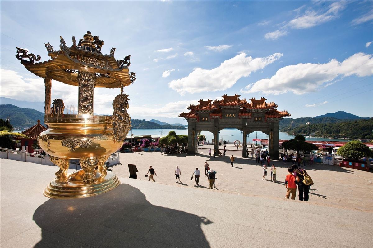 Die indigenen Thao bewahren in dieser Gegend bis heute ihre Traditionen. Am Ufer finden sich mehrere bedeutende Tempel, darunter der Wenwu-Tempel mit seinen prachtvollen Hallen oder die 46 Meter hohe Ci'en-Pagode, die von Chiang Kai-shek gestiftet wurde und einen weiten Panoramablick über den See bietet. Ein weiterer spiritueller Ort ist der Xuanzang-Tempel, der dem berühmten buddhistischen Mönch gewidmet ist.
