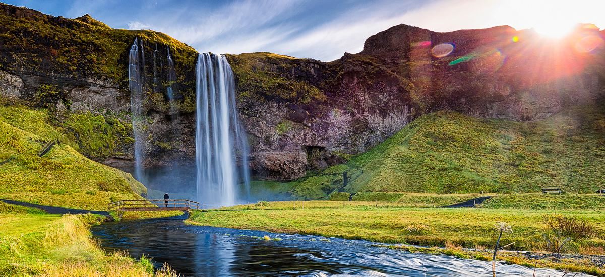 Nach dem Frühstück geht es zunächst zum Wasserfall Seljalandsfoss, hinter dessen Wasserschleier man im Sommer trockenen Fußes entlang spazieren kann, wenn Wind und Wetter es zulassen. Anschließend wartet der imposante Wasserfall Skógafoss auf deinen Besuch, der sich mit donnernd über 60 Meter in die Tiefe stürzt. Die Fahrt geht dann weiter entlang der Südküste zum Kap Dyrhólaey, der Südspitze Insel, wo dich eine herrliche Landschaft erwartet. Hier ragen Vogelklippen neben langgezogenen Lavastränden in die Höhe. Was für ein Anblick, wenn die weiße Gischt der Wellen über das schwarze Ufer rollt. Barfuß durch den Sand solltest du hier auch ohne »Superkräfte« laufen können.
