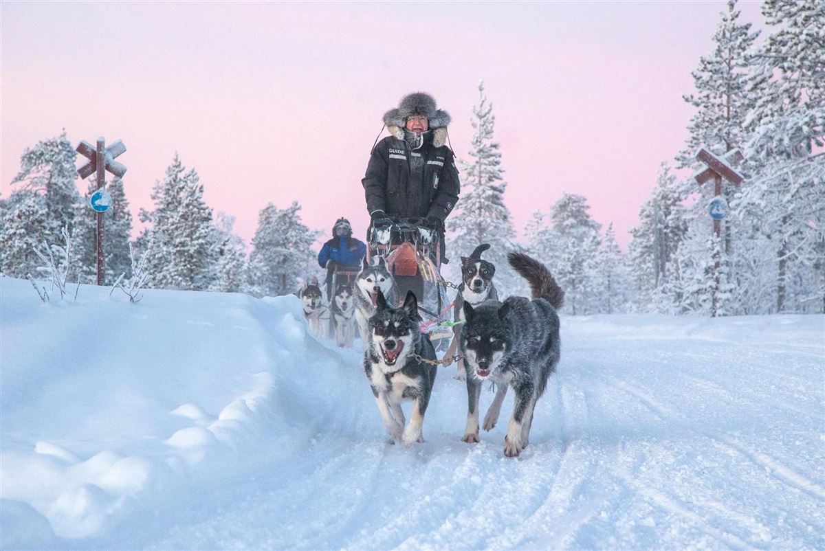 Nach einer kurzen Sicherheitseinweisung starten Sie Ihre Tour auf dem Motorschlitten (2 Personen je Schlitten, Einzelnutzung optional zubuchbar), welche durch unberührte Landschaften führt. Ein Ausflug mit hohem Spaßfaktor, welches auch ohne Motorsporterfahrung zu einem großartigen Outdoor-Erlebnis wird. Am Nachmittag wird Sie ein Guide mit den freundlichen Huskys bekannt machen und Ihnen Einblicke in die Huskyfarm und das Leben dieser außergewöhnlichen Tiere gewähren. Nach einer kurzen Einweisung beginnt Ihre Fahrt durch die verschneiten Wälder. Lassen Sie sich von den Hunden ziehen und genießen Sie die Fahrt durch das winterliche Lappland. Sie fahren jeweils zu zweit auf dem Schlitten. Unterwegs werden die Positionen gewechselt.