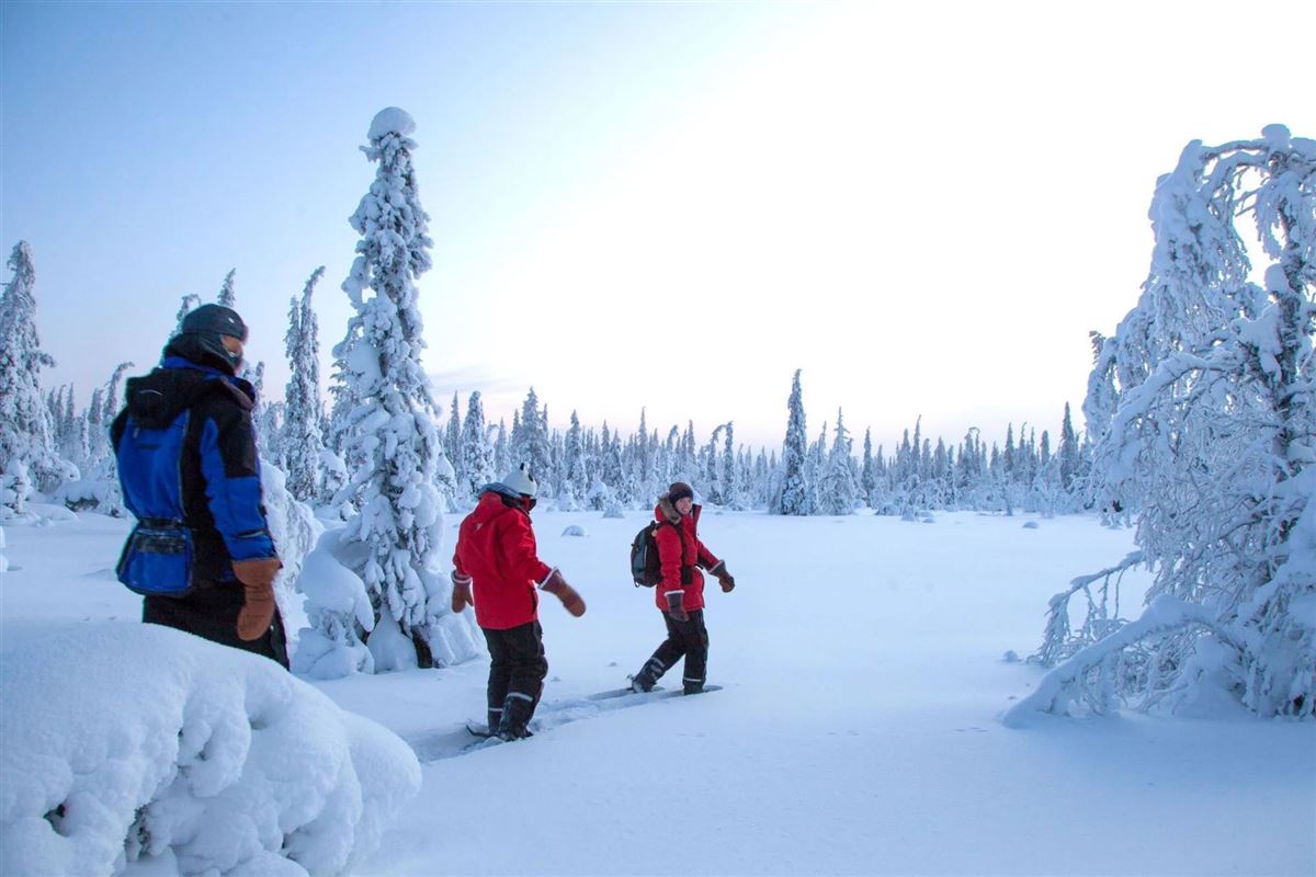 Sie besuchen einen Rentierfarmer und lernen sein Leben und das der Rentiere kennen. Zu guter Letzt bekommen Sie gezeigt wie man das Suopunki (lappisches Lasso) wirft und unternehmen anschließend eine kurze Fahrt mit dem Rentierschlitten. Am Abend geht es auf eine Schneeschuhwanderung im Pallas Nationalpark. Wandern Sie hoch hinauf, genießen Sie die Weite der Fjäll-Landschaften und atmen Sie die reinste Luft der Welt ein.