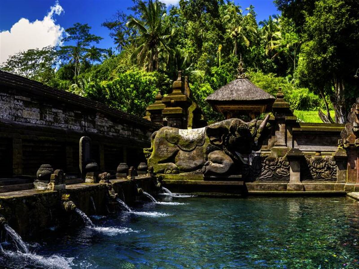 10000 oder noch viel mehr? Die Heiligtümer der Götterinsel hat wohl niemand gezählt. Wir sehen einige der schönsten in und um Ubud: die Königsgräber Gunung Kawi, die Elefantengrotte Goa Gajah und die heiligen Quellen von Tirta Empul. Dann liegen sattgrün die berühmten Reisterrassen von Tegalalang vor uns. 40 km. Nachmittags bleibt Zeit für einen Bummel durch die Galerien und Boutiquen von Ubud.