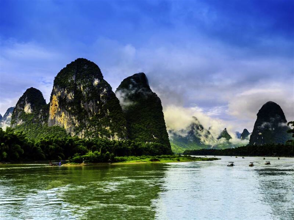 Von Bord eines Floßes aus verschaffen wir uns am Vormittag einen entspannten Überblick: sanftes Dahingleiten auf dem Li-Fluss, an den Ufern reiht sich ein Zuckerhut an den anderen. Am freien Nachmittag Räder mieten und durchs Bilderbuch-China radeln?