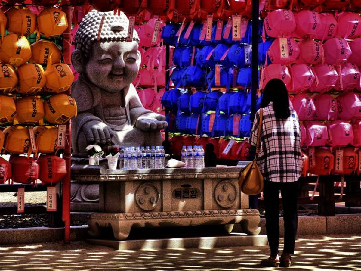 Mit der U-Bahn zum Fernbahnhof, dann sausen wir im Hochgeschwindigkeitszug in zwei Stunden nach Gyeongju. Die ehemalige Hauptstadt des Shilla-Reiches begeistert uns zunächst vor ihren Toren mit dem buddhistischen Bulguksa-Tempel und der Seokguram-Grotte - hier thront ein überlebensgroßer Steinbuddha auf seinem Sockel. Auf dem Weg zurück in die City ein Appetizer für morgen: König Wongseongs Hügelgrab liegt umgeben von Reisfeldern in perfekter Idylle.
