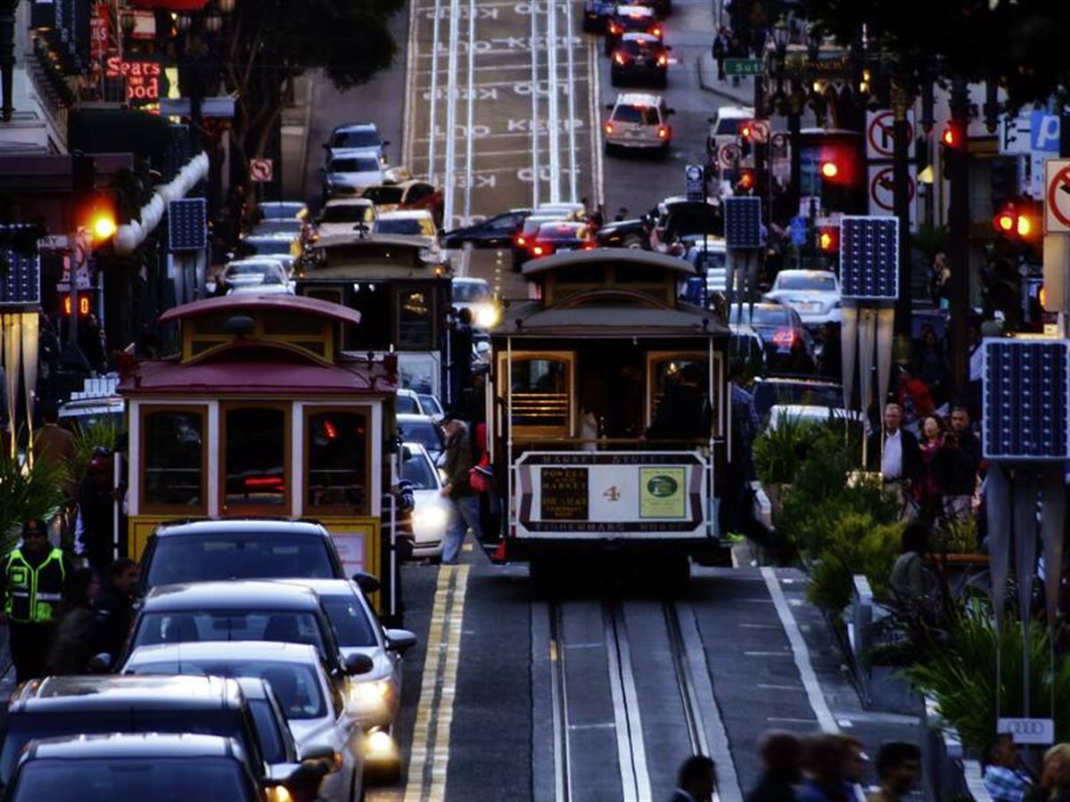 Good morning, San Francisco! Spätestens beim Treffpunkt um 8 Uhr lernen wir den Rest unserer Gruppe kennen. Helen zeigt uns die Stadt: Zu Fuß geht's durch Chinatown, zum Union Square und zur Market Street. Nachdem wir uns im Cable Car Museum mit der eigenwilligen Technik vertraut gemacht haben, rattern wir auch schon mit so einem Unikum hinunter in Richtung Fisherman's Wharf. Für den freien Rest des Tages hat Helen jede Menge Tipps parat: Kunstinteressierten könnte eine Graffiti-Street-Art-Tour gefallen - ein Künstler zeigt dabei die besten Wandmalereien der Stadt. Sportliche Alternative: Auf einer selbst organisierten Tour über die Golden Gate Bridge nach Sausalito radeln, prächtiger Ausblick auf "San Fran" inklusive - falls nicht plötzlich Nebel aufzieht ... Und abends: Lust auf ein Musical?