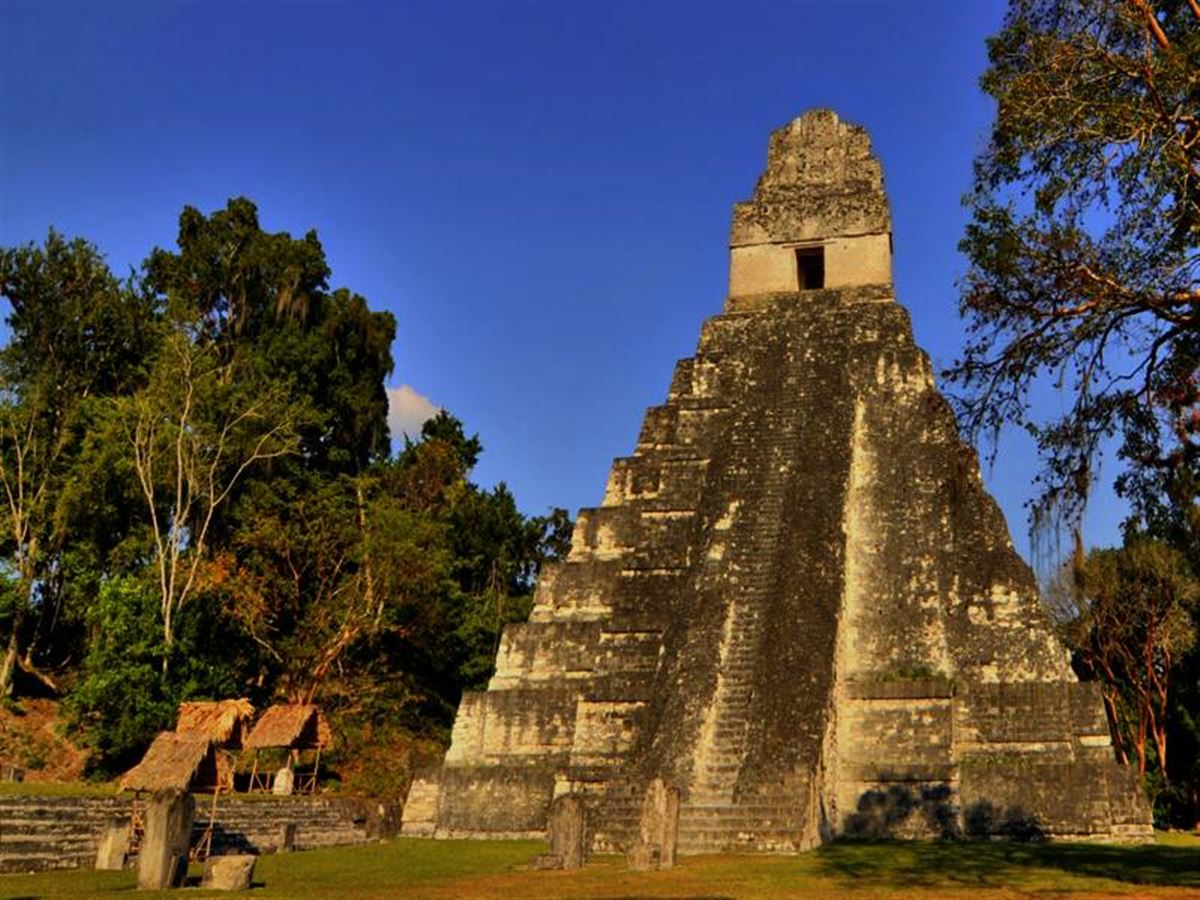 Der Sonnenaufgang kann warten, wir stehen mit dem Regenwald auf: Papageien krächzen, Nasenbären rascheln im Gebüsch. Wohin das Auge blickt, wilde Natur ... und ... plötzlich ... hier versteckt sich ja eine ganze Akropolis im Dickicht! Was für Ausblicke von den wolkenkratzenden Tempelpyramiden Tikals übers Blätterdach, der aufgehenden Sonne entgegen. Für diesen Once-in-a-lifetime-Moment muss man schon mehrmals hinschauen, so unglaublich! Staunen macht hungrig – rustikale Mittagsstärkung: Hähnchen mit Reis unterm Palmendach.