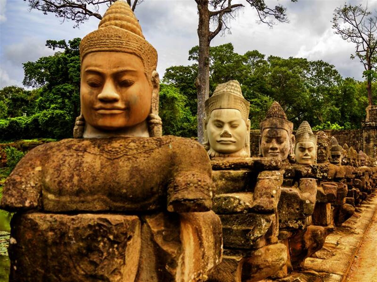 Overland mit dem Bus nach Siem Reap, dem Tor zum großartigen Khmer-Reich von Angkor. Schneller Abstecher ins Hotel, dann heißt es keine Zeit verlieren: Wir betreten erstmals die einst größte Stadt der Welt, deren Untergang bis heute ein Rätsel ist. Die magische Welt der Tempel aus längst vergangenen Zeiten zieht uns in ihren Bann und krönt den Tag mit einem ebenso unvergesslichen Sonnenuntergang.