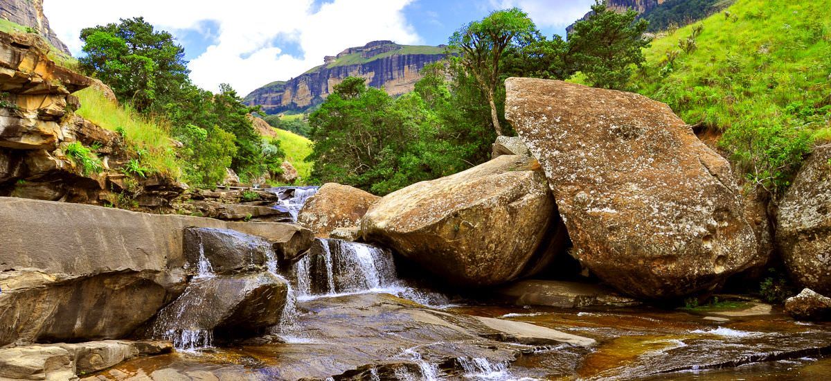 Frühmorgens fährst du zunächst entlang der Küste und schließlich durch das Landesinnere zu einem der schönsten Gebirge der Welt. Mit ihren über 3.000 Meter hohen Gipfeln gehören die Drakensberge zum UNESCO-Weltnaturerbe. In der kleinen Stadt Hermannsburg, einer ehemaligen deutschen Missionsstation, bist du bei einer einheimischen Familie mit deutschen Wurzeln zum Mittagessen eingeladen. Freue dich auf herzliche Gastfreundschaft mit Kochkäse von Tante Monika und Metzger Ruben’s Boerewors. In den KwaZulu-Natal Midlands besuchst du das beeindruckende Nelson Mandela Capture Site Memorial. Das Denkmal aus Eisenstelen markiert den unscheinbaren Ort, an dem Nelson Mandelas »Long Walk to Freedom« 1962 mit seiner Verhaftung begann. Lass’ den Tag bei einem Glas Wein mit atemberaubendem Blick auf das Tal ausklingen.