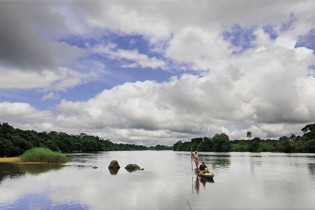 Fahrt nach Tiwai. Unterwegs ein Stopp in Potoru, einer kleinen und ruhigen Stadt. Gegen Abend Ankunft in Tiwai. Auf der großen Regenwaldinsel im Moa-Fluss gibt es 11 Primatenarten, u.a. Schimpansen, Dianameerkatzen und Stummelaffen. Endemische Zwergflusspferde, 800 Arten von Schmetterlingen und 125 Vogelarten machen Tiwai Island zu einem Naturparadies.