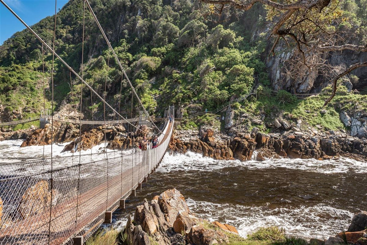 Wie aus der Zeit gefallen präsentiert sich Nature‘s Valley mit seinen dichten Wäldern und der Tsitsikamma-Nationalpark behauptet von sich der letzte Urwald Südafrikas zu sein. Auf und ab geht der Wanderweg an dessen Ende sich eine schwindelerregende Hängebrücke über den Storm River spannt. Wer möchte, läuft ein Stück des bekannten Otter Trails. Genießen Sie das beeindruckende Panorama der steil abfallenden Küstenlinie und das Farbenspiel des grünen Landgürtels im Kontrast zum tiefblauen Ozean. Wolkenfetzen wabern über Ihnen, die Straße mäandert sich entlang der Küste und vor Ihnen tut sich ein Panorama allererster Güte auf, willkommen in der inoffiziellen Hauptstadt der Garden-Route, Knysna. Gemeinsam mit dem Reiseleiter erkunden Sie dieses charmante Städtchen, das sich an eine große Lagune schmiegt. Zwei gigantische Felsen flankieren die schmale Passage, die das offene Meer von der Lagune trennt, der gewaltige Tidenhub beeindruckt. Von hier oben haben Sie die besten Blicke auf Thesen Island, welches wie Klein Venedig aussieht. Übernachtung in einer Lodge. (Fahrstrecke: ca. 260 km, Fahrzeit: ca. 3,5h)