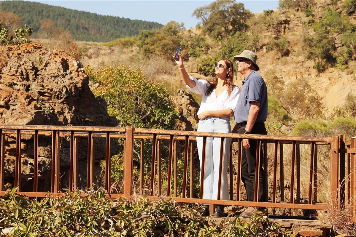 Es ist unschwer zu erraten, woher die Panorama-Route ihren Namen erhielt. Sie beginnen Ihren Roadtrip am Nachmittag und setzen ihn am nächsten Tag fort. Lassen Sie sich einen Blick auf die 33 km lange Felsschlucht des Blyde-River-Canyons nicht entgehen. Sie beginnt an den Bourke's Luck Potholes, die im Verlauf von Jahrtausenden durch Felswaschungen entstanden sind, und endet an den Three Rondavels. Sie wollten schon immer einmal am Fenster Gottes stehen? Am Aussichtspunkt zum Blyde-River-Canyon haben Sie Gelegenheit dazu. Sie fahren danach nach Graskop, wo Sie der gläserne Fahrstuhl hinab in eine bewaldete Zauberwelt führt. Sie haben ausführlich Gelegenheit den dichten Regenwald auf einem Rundgang zu erkunden. Das dazugehörige Restaurant hat eine fantastische Aussicht über die Schlucht. Übernachtung im Gästehaus. (Fahrzeit 5h, 260 km ).