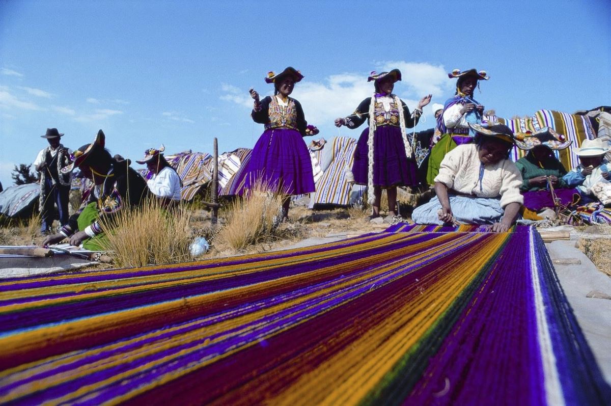 Ganztages-Bootsausflug auf dem Titicaca-See: Besuch der schwimmenden Schilfinseln der Uros und der Insel Taquile, berühmt für ihre farbenprächtige Webkunst und ihre strickenden Männer.