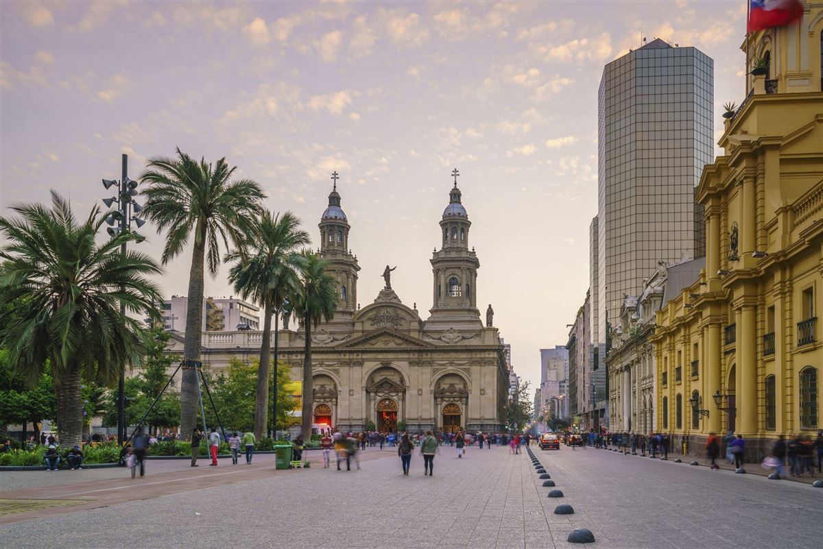 Nach Ankunft am Morgen werden wir am Flughafen von Santiago von unserer Reiseleitung empfangen und zu unserem zentral gelegenen Hotel gebracht. Am Nachmittag entdecken wir bei einer Stadtführung die chilenische Hauptstadt: Neben dem historischen Kern um Plaza de Armas, Kathedrale und Präsidentenpalast "La Moneda" dürfen auch das moderne Santiago, ein Blick auf die Stadt vom Aussichtsberg "San Cristóbal" und der lebhafte Zentralmarkt nicht fehlen.