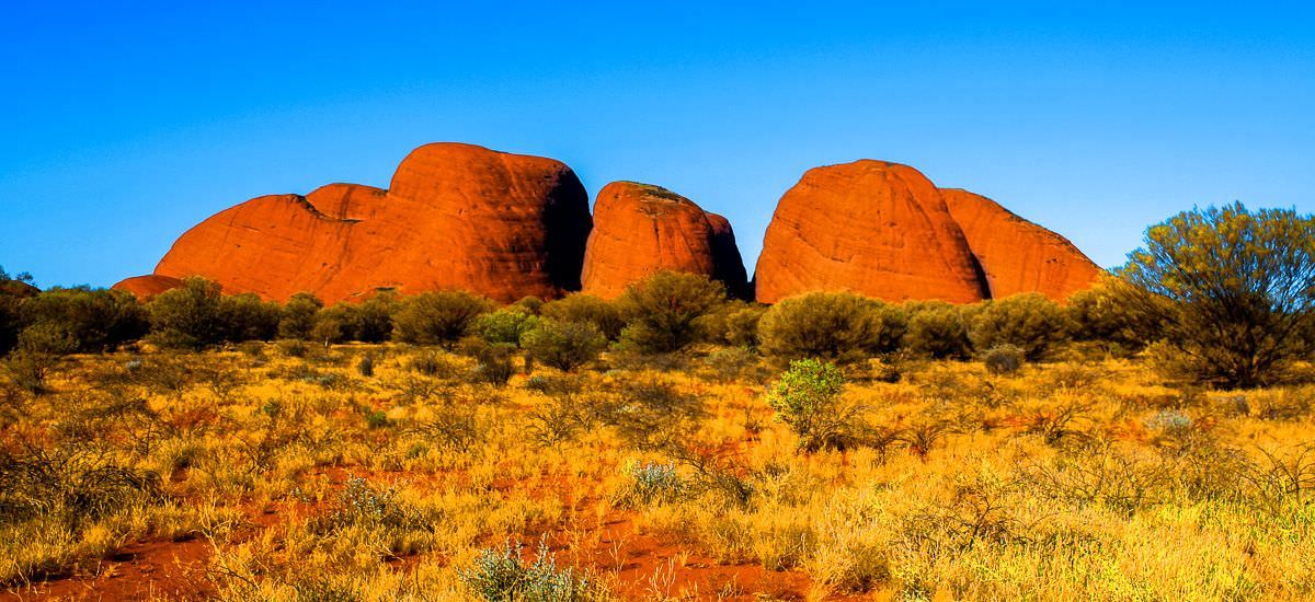 Auf zum Uluru! Die Fahrt zum Nationalpark führt über rot leuchtende Sanddünen. In der Unterkunft angekommen, fährst du nach einer kurzen Pause weiter zu den Kata Tjuta, wie die 36 riesigen Steinkuppeln genannt werden. Je nach Jahreszeit erkundest du auf einer 1- bis 2-stündigen Wanderung entweder die spektakulären Bergformation im »Valley of the Winds« oder die im »Walpa Gorge«. Du durchquerst grandiose Landschaften im Herzen des Outback und näherst dich dem leuchtend roten Uluru. Du wirst sofort verstehen, warum der Monolith den Anangu heilig ist. Und den Sonnenuntergang wirst du nie vergessen.