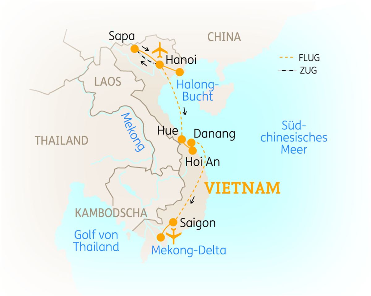 Nach dem Frühstück entdecken Sie einige der bedeutendsten Orte Hanois. Das Ho-Chi-Minh-Mausoleum (Außenbesichtigung), die einzigartige Einpfahlpagode und den Literaturtempel – Vietnams erste Nationalakademie. Den Nachmittag können Sie frei nach Ihren Wünschen gestalten. Am Abend lassen Sie den Tag wie die Einheimischen am Westlake mit einem vietnamesischen Bier ausklingen und treten zu gegebener Zeit Ihre nächtliche Zugreise nach Sapa an. Machen Sie es sich in Ihrem Schlafwagen gemütlich (geteilte Schlafkabine für bis zu 4 Personen). 1 Nacht im Zug. (F)
