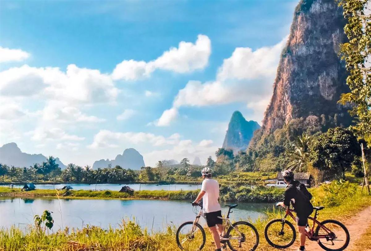 Heute radeln wir zum Dorf Nai Sra. Die Strecke ist umgeben von Karstklippen und hält tolle Ausblicke auf Dschungel, Ananas-, Ölpalmen- und Kautschukplantagen bereit. Die Tour endet an einem schönen, erfrischenden Süßwasserfluss mit Bademöglichkeit. Anschließend Fahrt zurück nach Ao Nang.