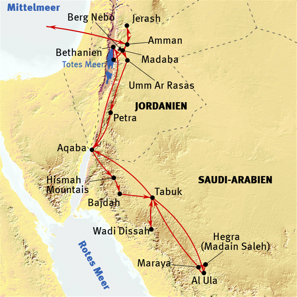 AlUla bietet Reisenden komfortable Rahmenbedingungen. Die Stadt liegt in der Provinz Medina, rund 300 Kilometer nördlich der gleichnamigen Heiligen Stadt, und verfügt über einen eigenen internationalen Flughafen. Dank regelmäßiger Inlandsflüge aus Riad, Jeddah oder Medina ist die Anreise unkompliziert. Die beste Reisezeit ist von Oktober bis April, wenn die Temperaturen angenehm sind und sich Ausflüge in die Natur und zu archäologischen Stätten bestens eignen. Wenn Sie nach Saudi-Arabien einreisen möchten, brauchen Sie dafür ein E-Visum. Dieses Visum können Sie einfach und schnell online beantragen.