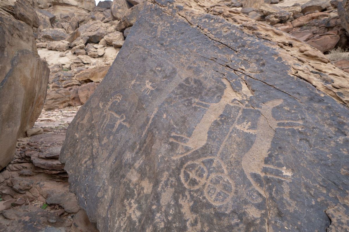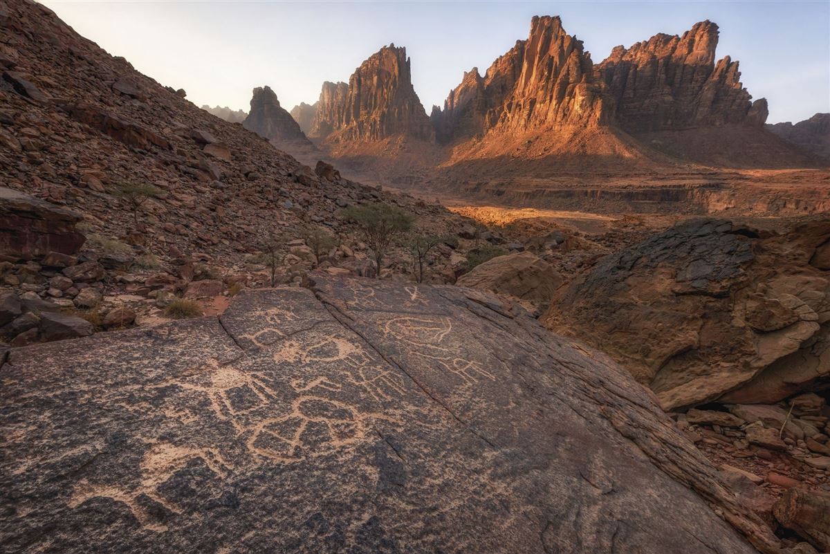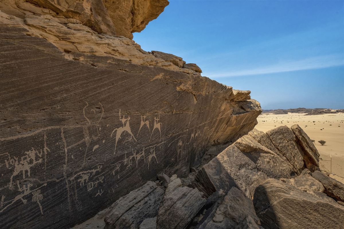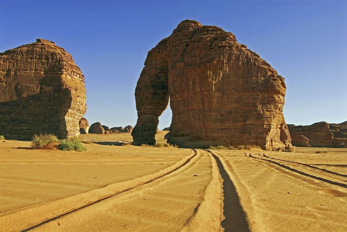 Eine "Gemäldegalerie" vom Neolithikum bis in die Eisenzeit erwartet uns heute in Jubbah. Auf großen Sandsteinfelsen finden wir Malereien und Petroglyphen mit Menschen, Wild- und Haustieren, Vögeln, Göttern und Inschriften auf thamudisch und arabisch (UNESCO-Weltkulturerbe). Wir steigen um in Geländewagen und fahren quer durch die Nafud-Wüste an Sanddünen und Lavagebieten vorbei nach AlUla. Abends entspannen wir am Elephant Rock, einem imposanten, monolytischen Sandsteinbogen, der beliebter abendlicher Treffpunkt der Saudis ist. (570 km, 6 Std.)