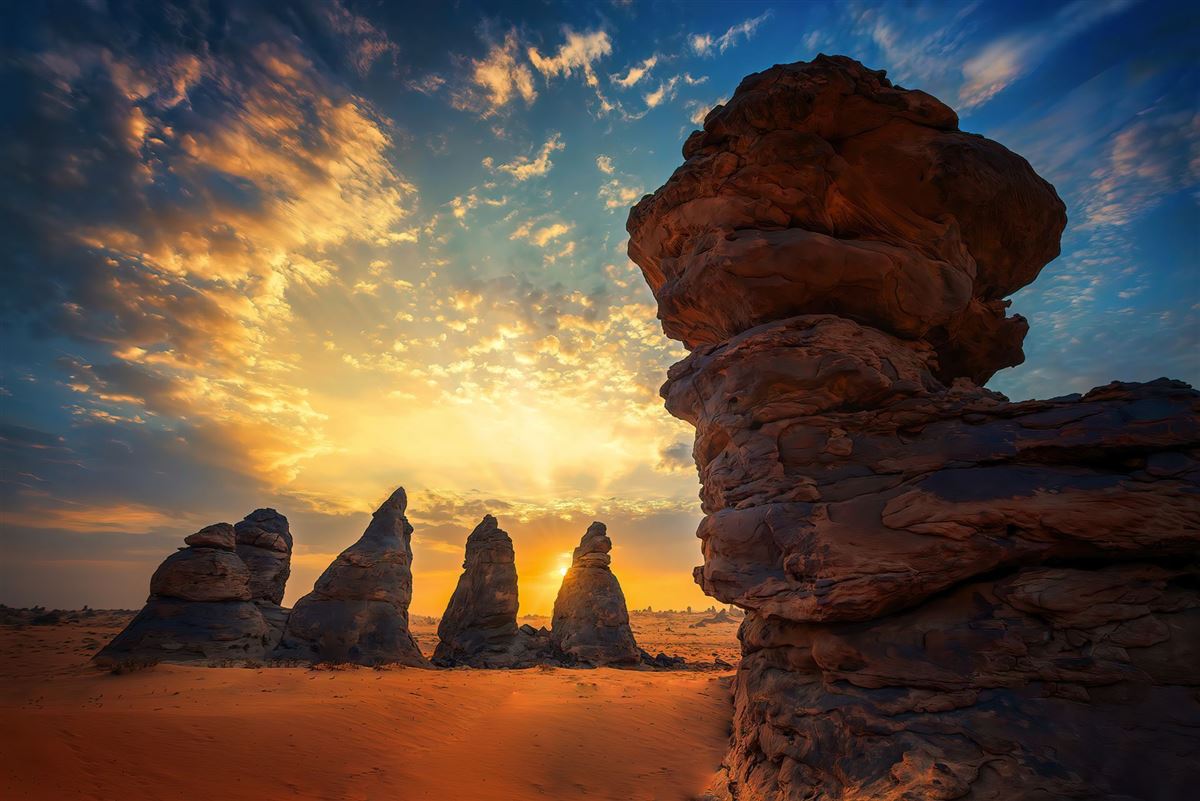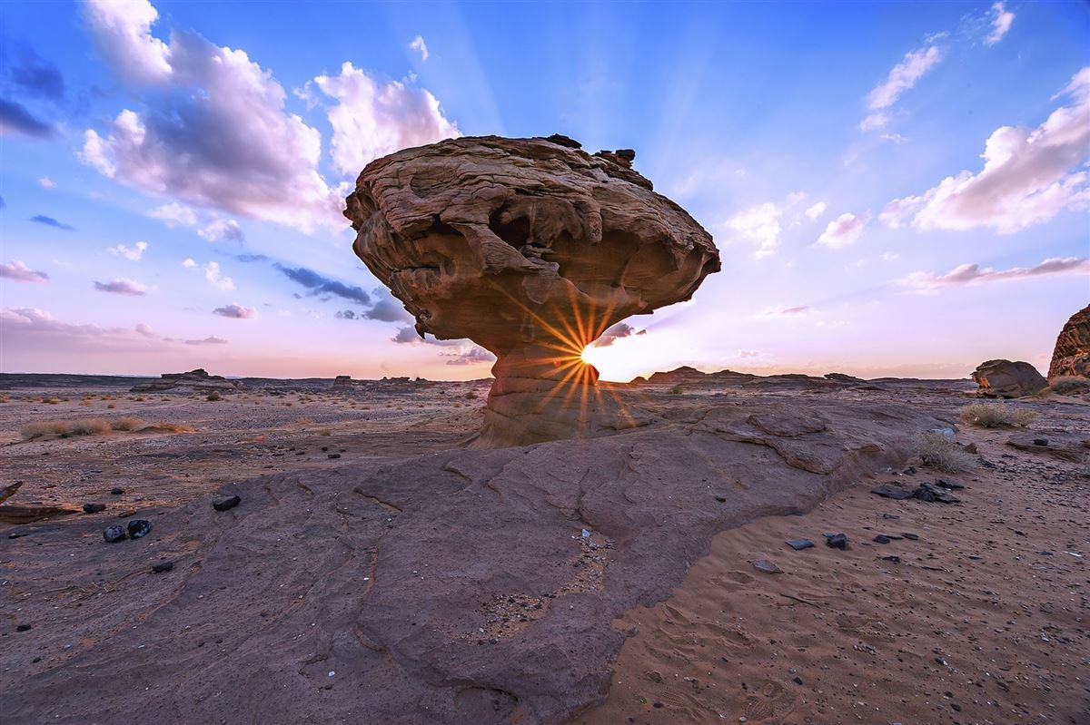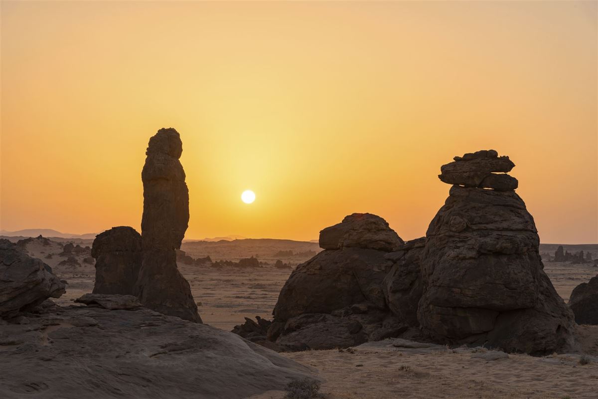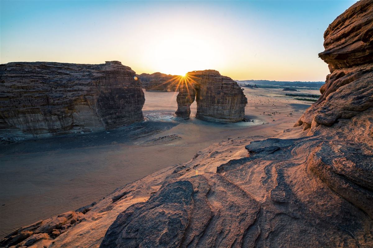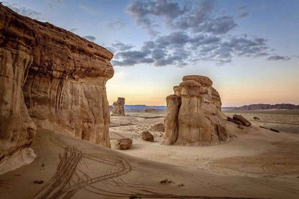 Eine "Gemäldegalerie" vom Neolithikum bis in die Eisenzeit erwartet uns heute in Jubbah. Auf großen Sandsteinfelsen finden wir Malereien und Petroglyphen mit Menschen, Wild- und Haustieren, Vögeln, Göttern und Inschriften auf thamudisch und arabisch (UNESCO-Weltkulturerbe). Wir steigen um in Geländewagen und fahren quer durch die Nafud-Wüste an Sanddünen und Lavagebieten vorbei nach AlUla. Abends entspannen wir am Elephant Rock, einem imposanten, monolytischen Sandsteinbogen, der beliebter abendlicher Treffpunkt der Saudis ist. (570 km, 6 Std.)