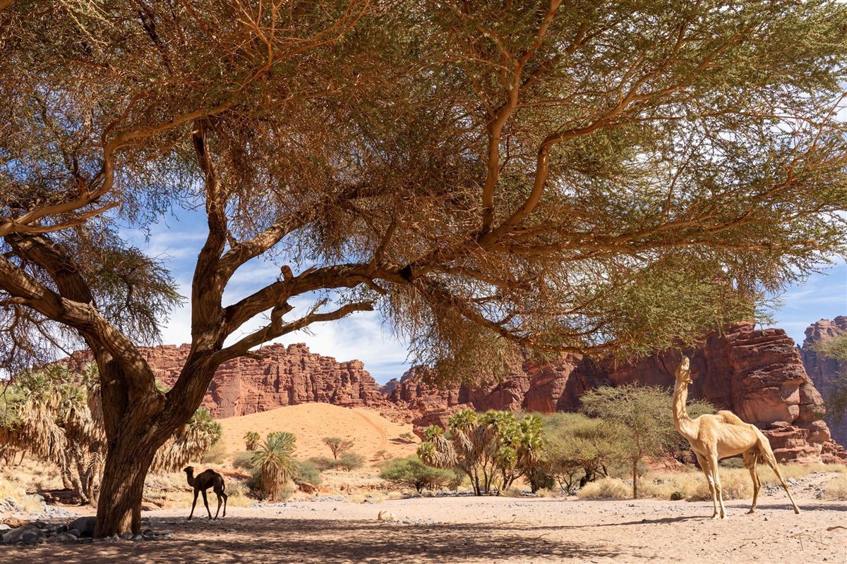 Ausflug nach Dadan, vor der Ankunft der Nabatäer war es eine der fortgeschrittensten Städte Nordarabiens. Wir sehen die Ruinen der früheren Stadt und einige Gräber, das Imposanteste wird von Löwen bewacht. Bislang ist erst ein kleiner Teil dieser alten Zivilisation ausgegraben. Dann fahren wir zum Jebel Ikmah mit zahllosen prähistorischen Petroglyphen und beeindruckenden Felszeichnungen. Das malerische Wadi Disah begeistert uns danach mit einem langen ausgetrockneten Flussbett, kleinen Bächen, Schatten spendenden Palmen, umgeben von dramatischen Sandsteinformationen, eine spektakuläre Landschaft. Übernachtung in Tabuk. (490 km, 6 Std.)